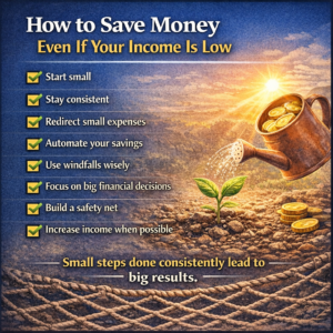 When Saving Feels Impossible If you’re earning a low income, saving money can feel like trying to fill a bucket with a hole in the bottom. Money comes in… and then it’s gone. Bills, groceries, transportation, and everyday expenses seem to take everything. By the end of the month, there’s little—or nothing—left to save. It’s […]